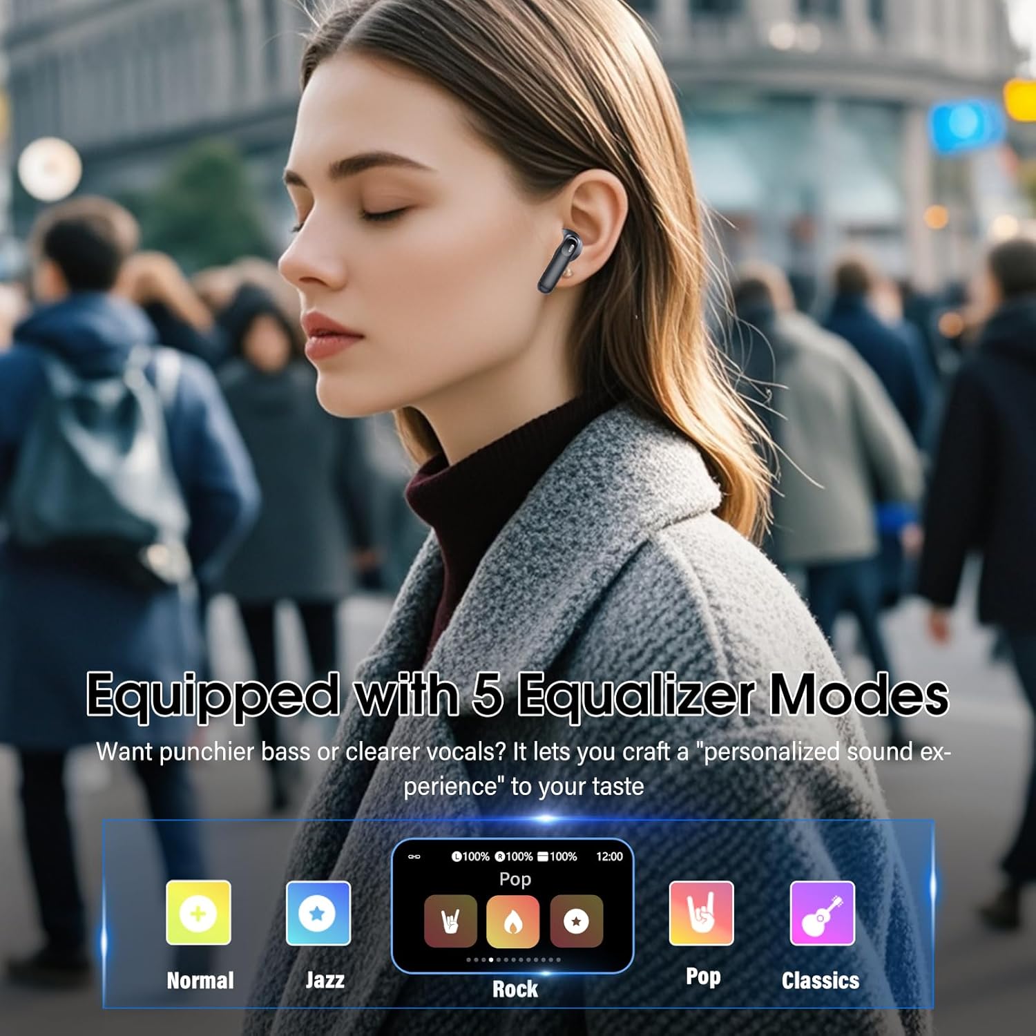 Wireless Earbuds, Bluetooth 5.4 Headphones with Multifunctional Touch Screen, 48H Hi-Fi Stereo Ear Buds with ENC Noise Cancelling Mic/5 EQ Modes Earbuds, IPX7 Earphones for iOS Android Black