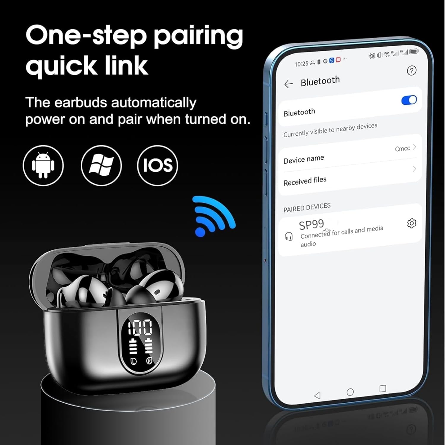 ✅40 hour total battery life and real-time battery display, say goodbye to anxiety:Power through your week with confidence. Enjoy up to 8 hours of playtime on a single charge, and a massive total of 40 hours with the compact, pocket-sized charging case. The smart LED power display shows the exact remaining battery percentage for both the earbuds and the case at a glance, so you’re never left guessing.