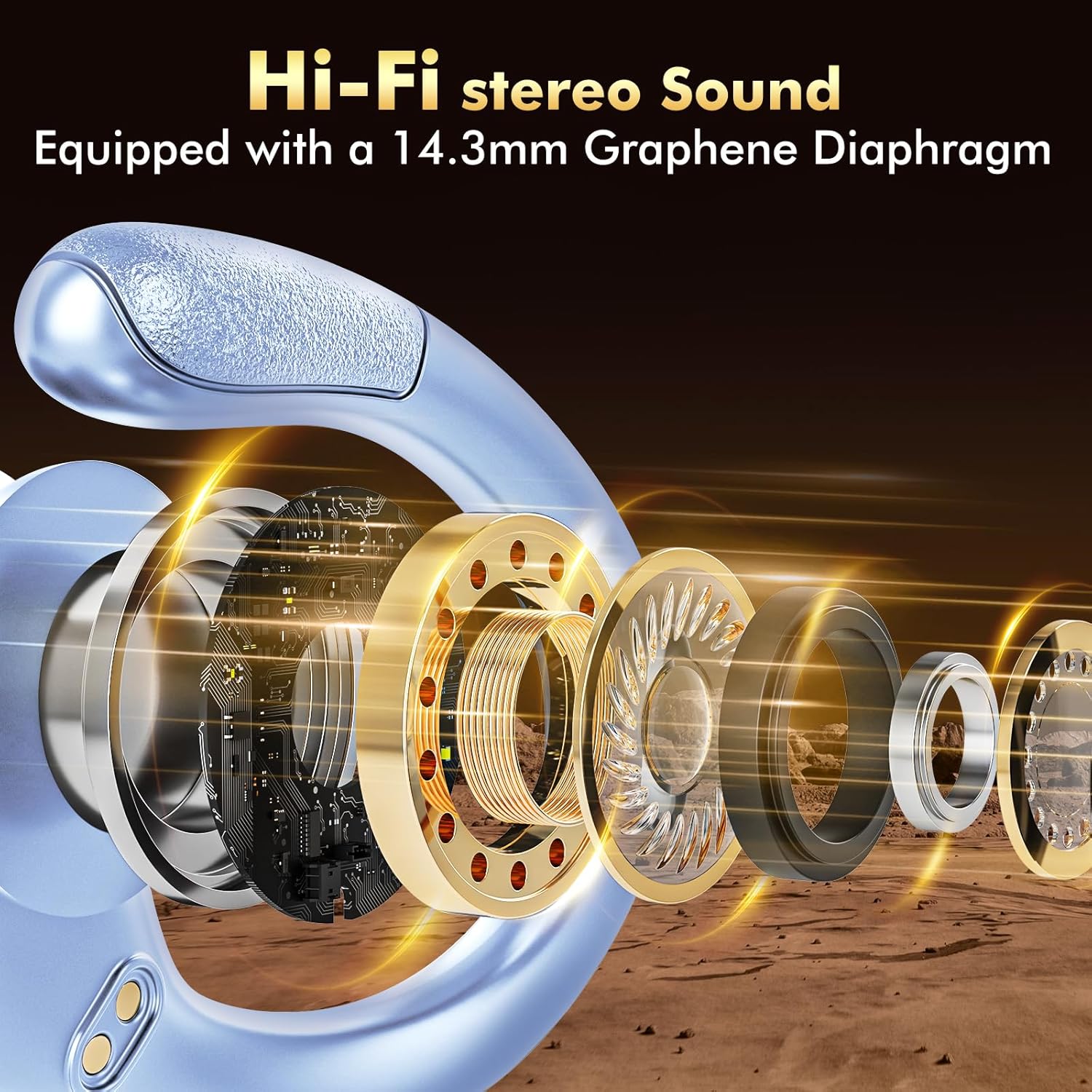 【Immersive Sound & Noise Cancellation】Equipped with 14.3mm dynamic drivers and advanced acoustic tuning, these earbuds deliver powerful bass, crisp highs, and balanced mids. The ergonomic design enhances passive noise isolation, while the built-in microphone ensures clear voice pickup during calls—even in noisy environments