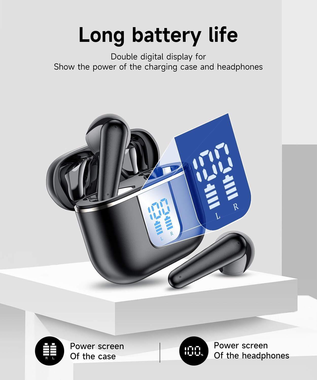 Stable Bluetooth 5.3 Connection-The wireless earbuds using the latest Bluetooth 5.3 technology, these earbuds provide a fast and stable connection. They work with all kinds of Bluetooth devices like smartphones, tablets, and laptops, and keep a strong signal without dropouts