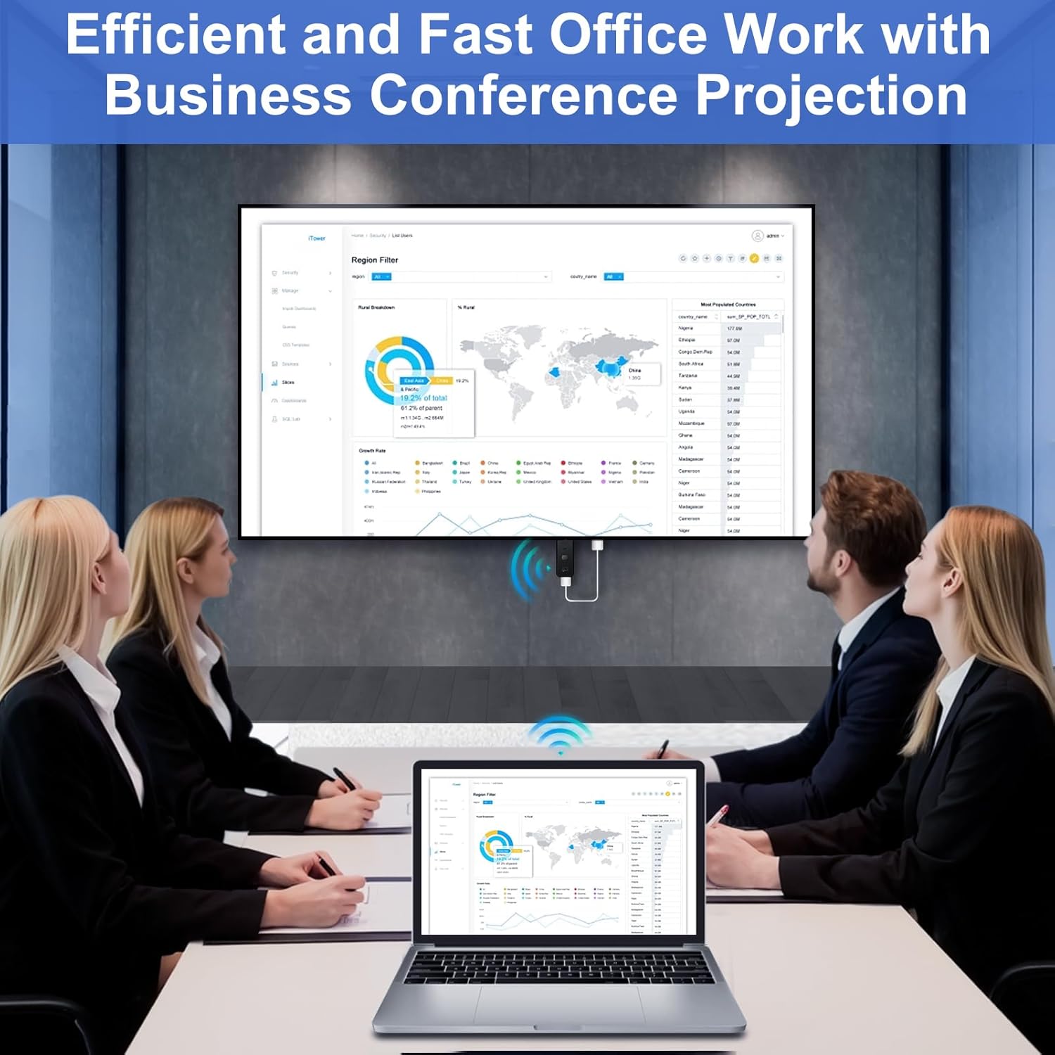 Wide Compatibility for Multiple Devices: This versatile wireless HDMI adapter works with a variety of devices, enabling screen mirroring from smartphones, tablets, and laptops to displays, projectors, and more. Whether you’re projecting content for a business presentation, classroom teaching, or movies at home, it’s the ideal solution for all your HDMI needs