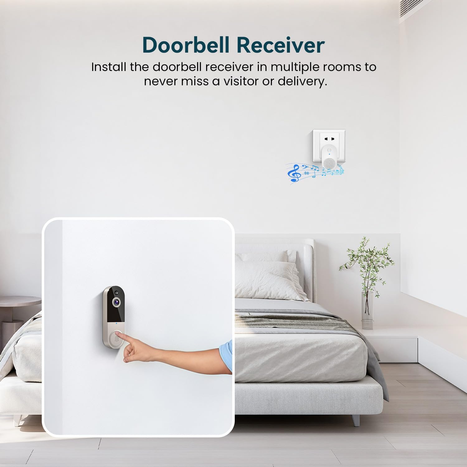 Doorbell Receiver Placement Where You Need It: Install the doorbell receiver in multiple rooms to never miss a visitor or delivery.