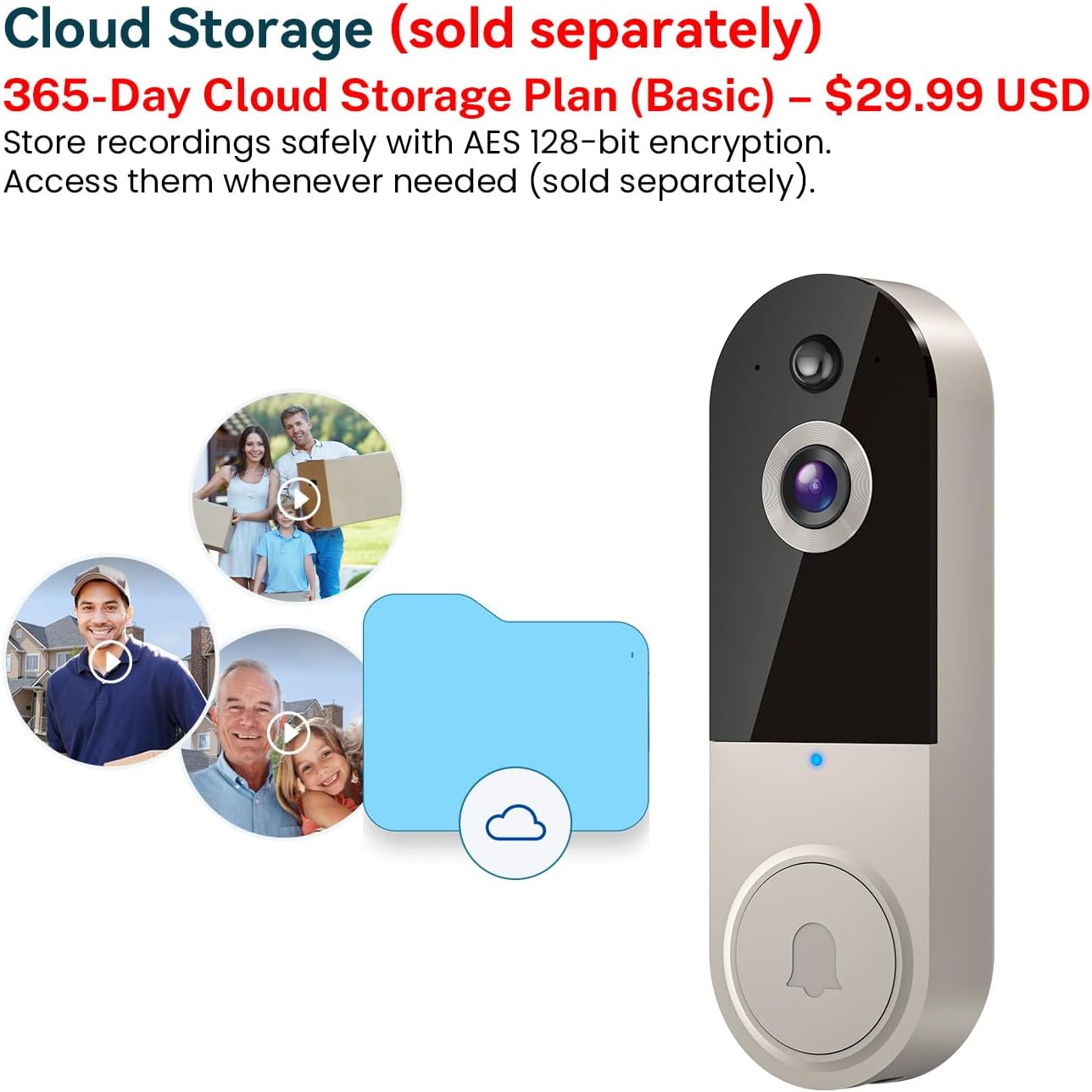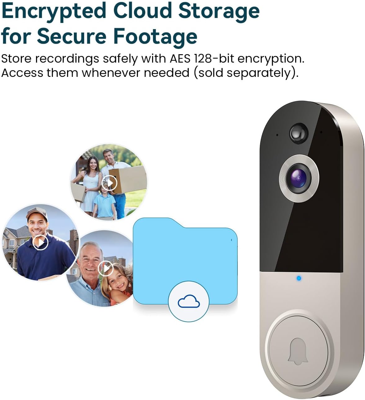 Encrypted Cloud Storage for Secure Footage: Store recordings safely with AES 128-bit encryption. Access them whenever needed (sold separately).
