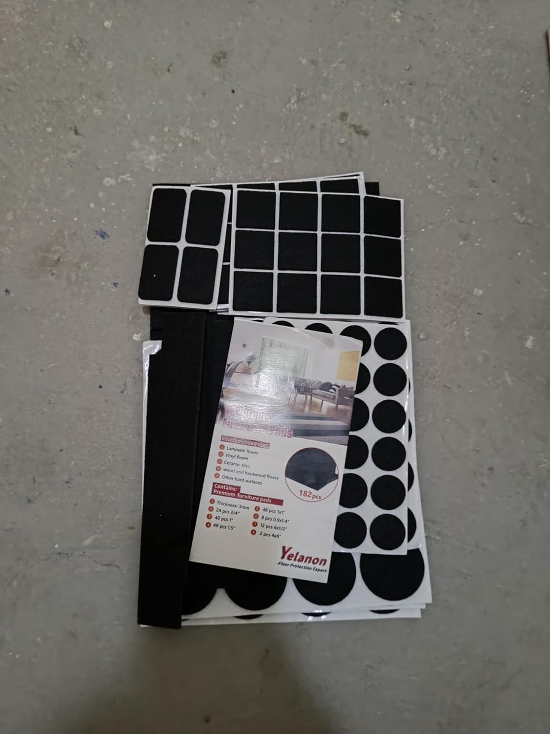 Yelanon Felt Furniture Pads -182 Pcs Premium Felt Pads for Chair Legs Furniture, Floor Protectors for Hardwood Floors, Black